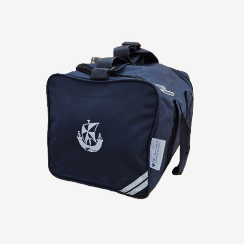 Navy childs school rain mac which folds away in to waterproof bag.