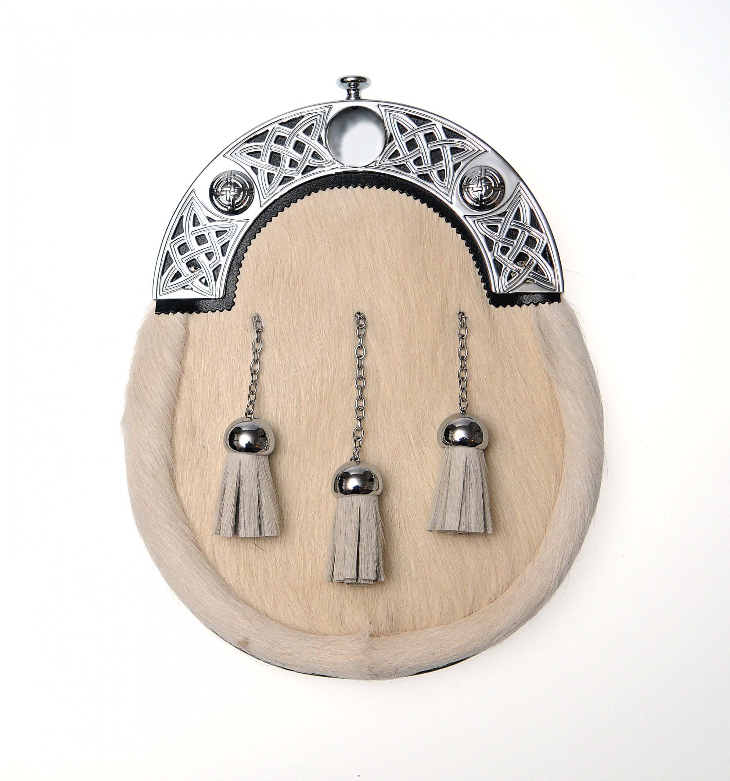 This Celtic-inspired sporran, ideal for dress occasions, is featuring durable bovine leather, with a polished chrome cantle and enhanced with refined embellishments. This piece is perfect for those who appreciate symbols of Scotland’s natural heritage, perfect for cultural occasions. Match it with a traditional kilt and jacket, or add a waistcoat for an elegant finishing touch.
